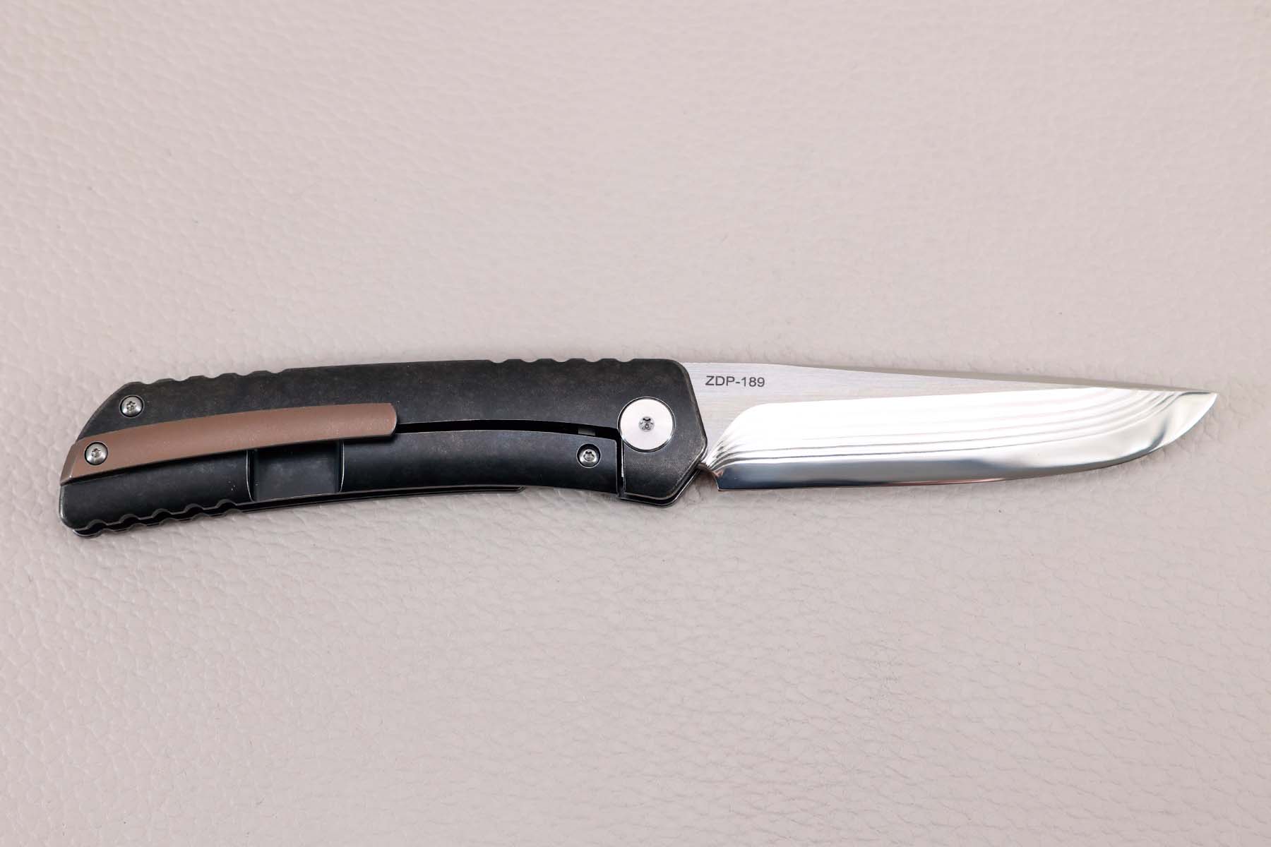 Il est muni d'une lame en acier inoxydable zdp-189 de très haute gamme. La dureté est de 67 HRC, ce qui la rend très résistante.