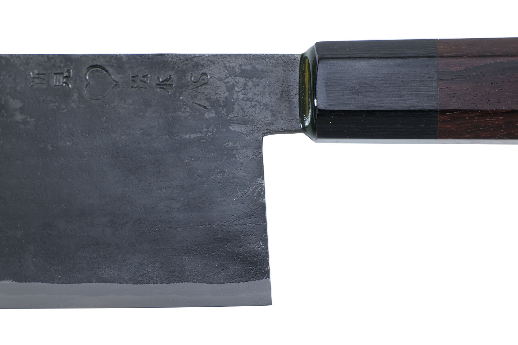 Lame en acier aogami super, flancs en acier inox, 63±1 HRC.