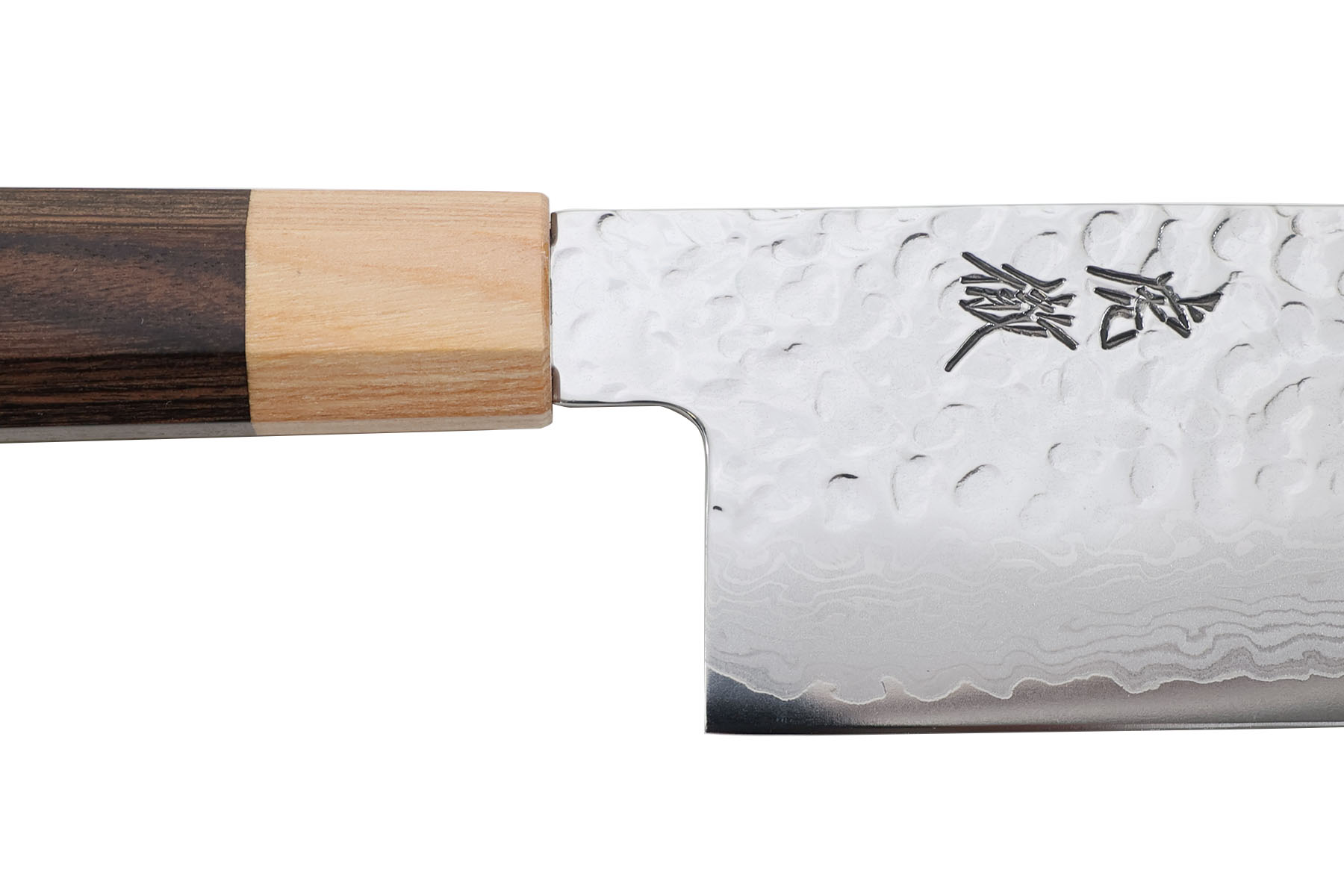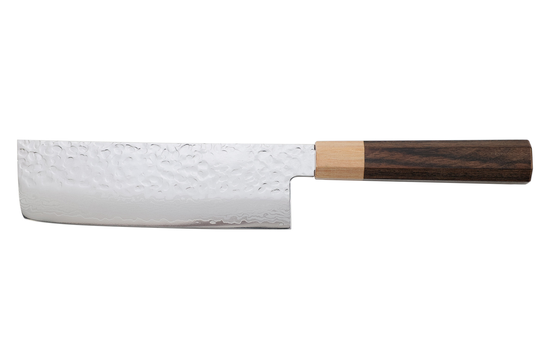 Lame martelée en acier inoxydable VG10 damas (61±1HRC), finition poli miroir.