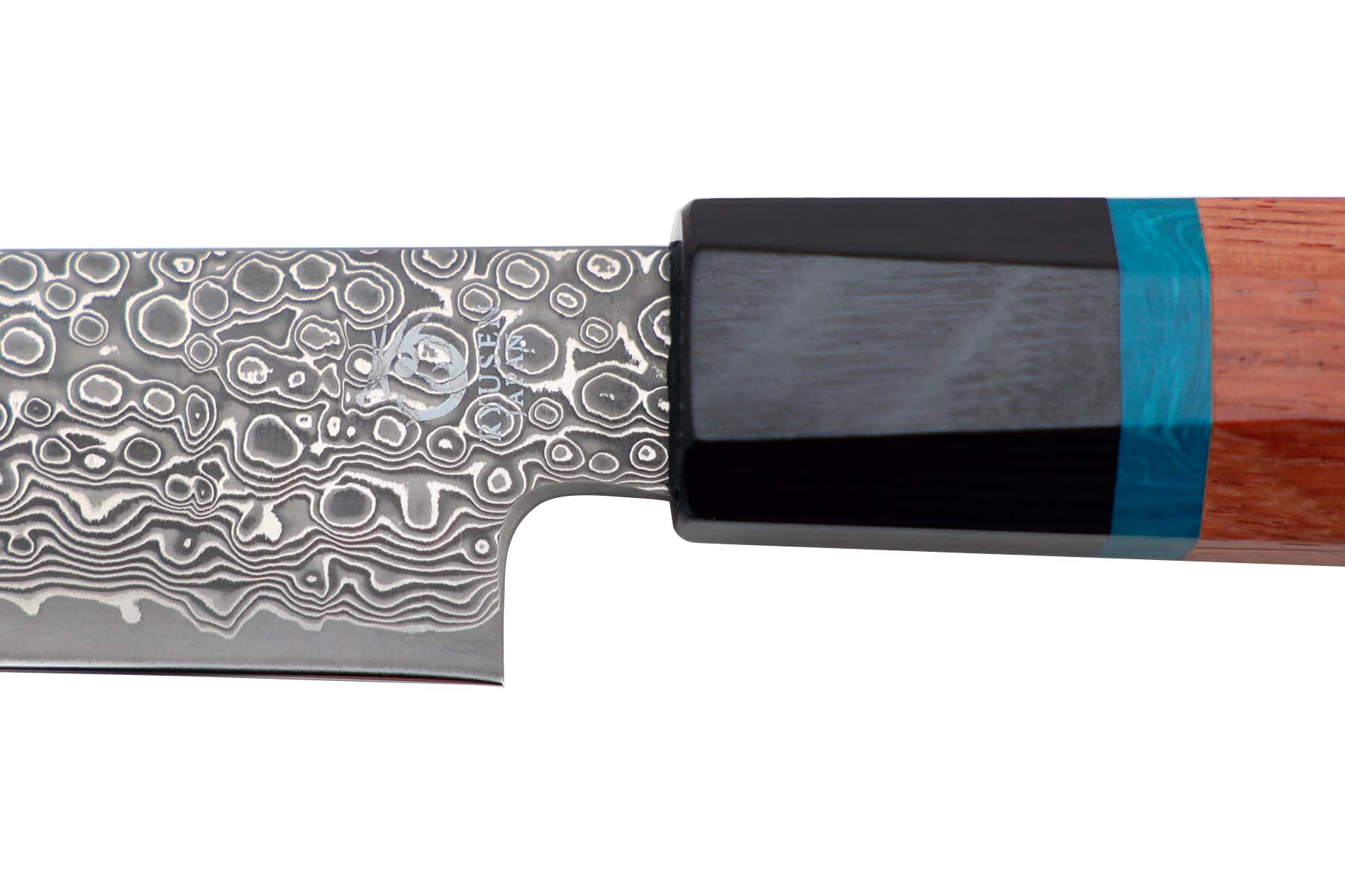 Manche traditionnel octogonal en pakkawood, intercalaire en résine bleue.
