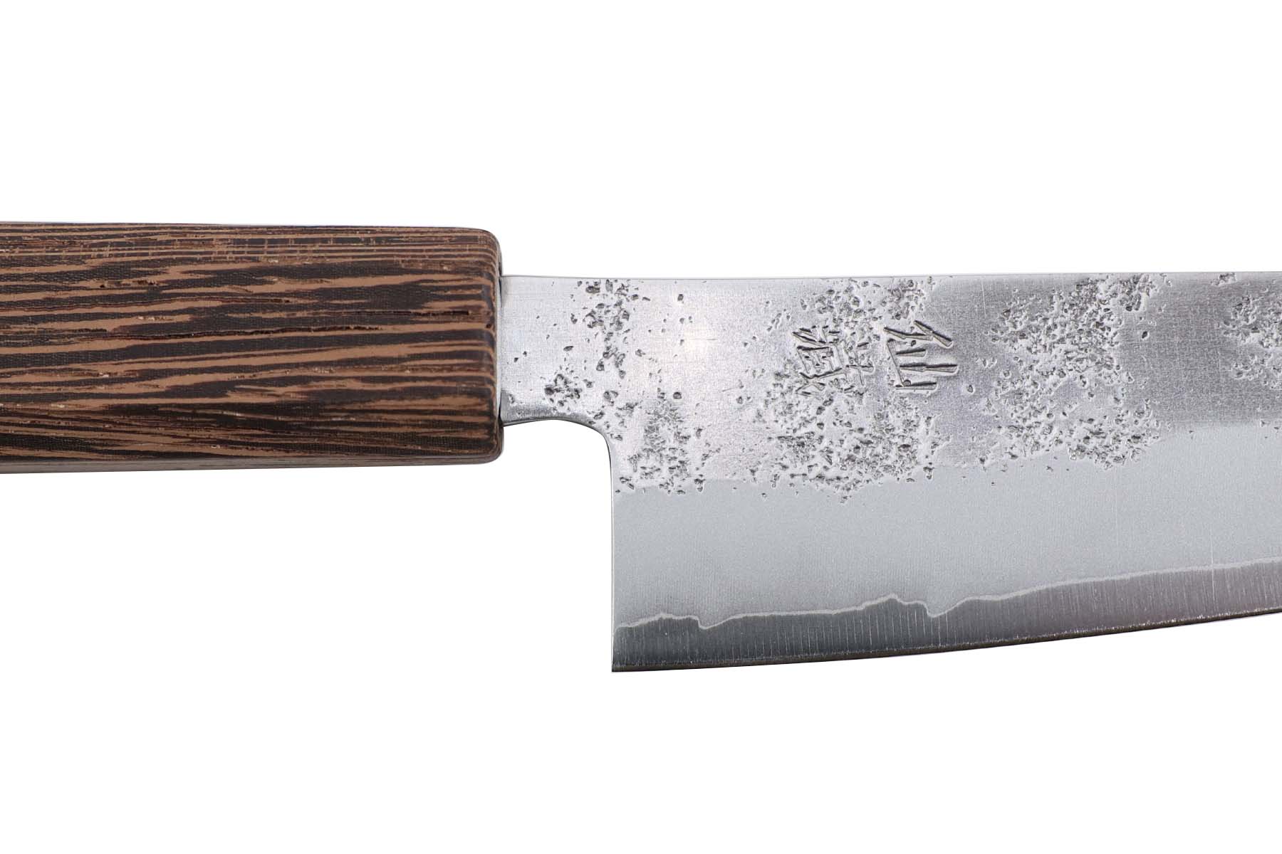 Lame en acier inoxydable Ginsan (Silver 3) (60±1 HRC), finition brut de forge sur le haut de lame.