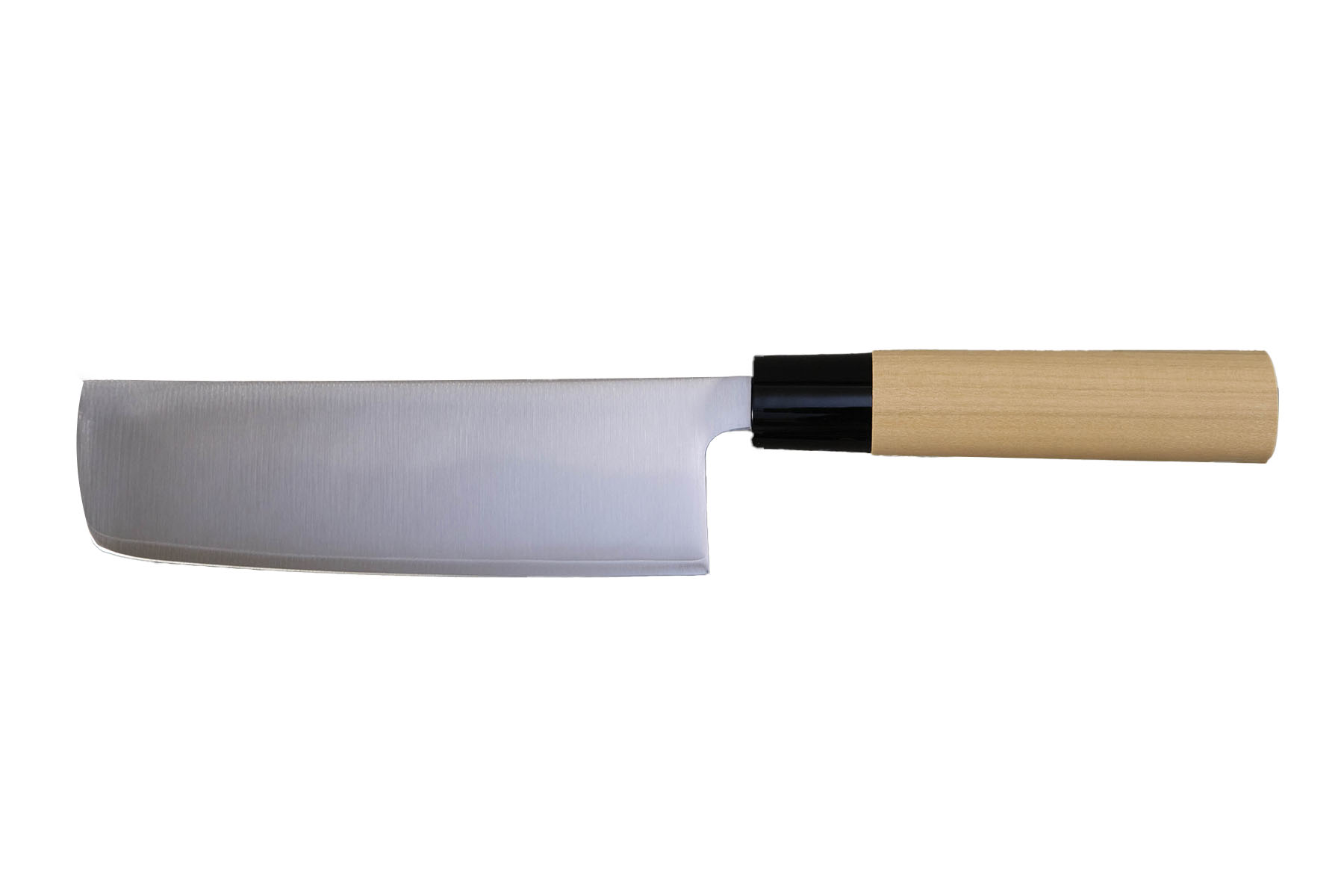 Le couteau à légumes japonais est appelé nakiri, ou usuba en version asymétrique ou bien encore couteau "pelle". C'est le traditionnel couteau à légumes japonais. Sa forme haute en fait un parfait couteau à émincer sur planche, alors que sa forme large sur toute la lame permet de servir de spatule ou de pelle pour transporter les mets finement coupés de la planche à découper.
