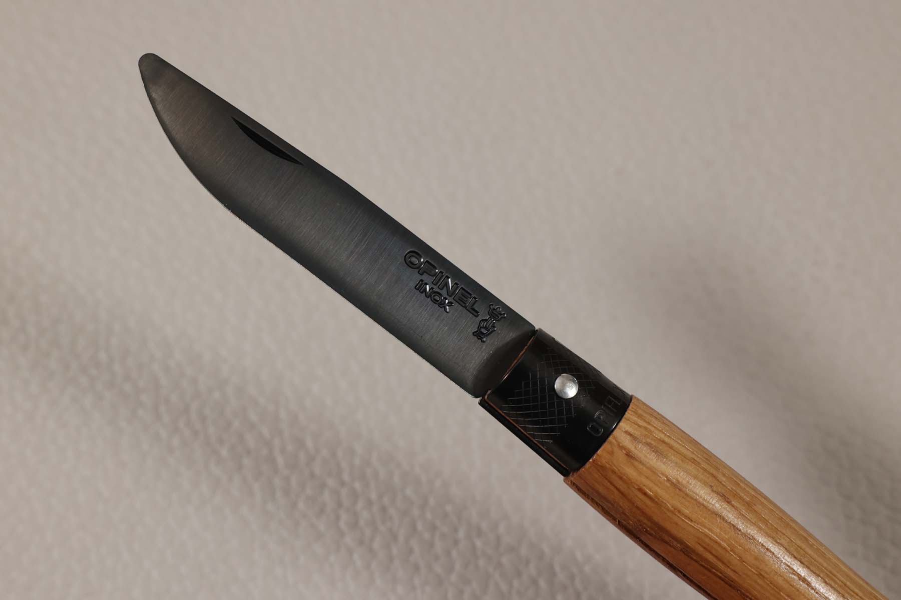 Le manche est en chêne, ce qui donne toute son élégance à ce nouvel Opinel.