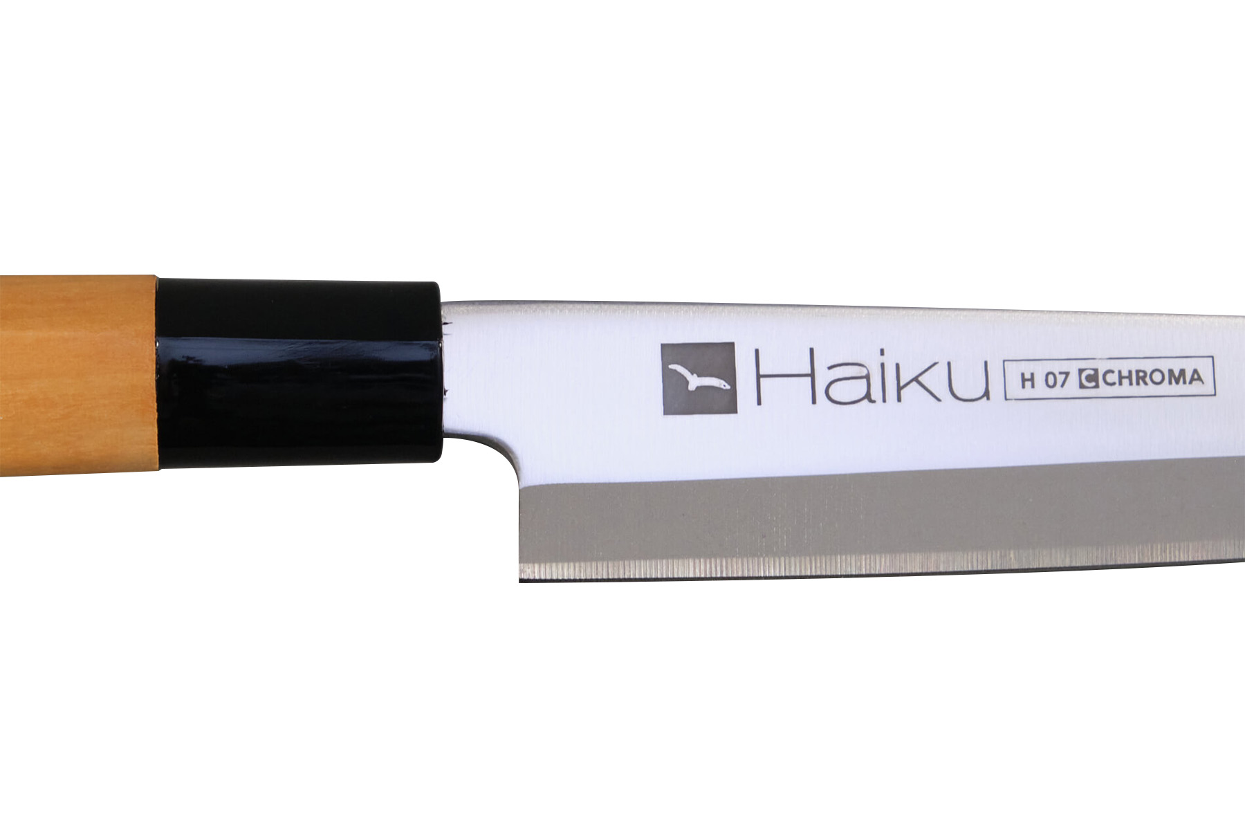 Le couteau sashimi Haiku dispose d'une lame avec un tranchant asymétrique, il ne convient qu'aux utilisateurs droitiers.