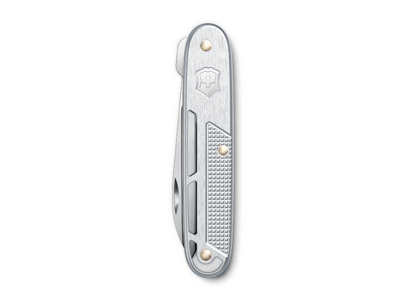 Manche alox 93 mm quadrillé, grande lame avec cran intérieur et clip ceinture.