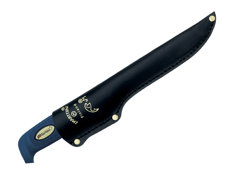 • Poignard Marttiini, lame à filets flexible 18 cm - manche gomme bleu