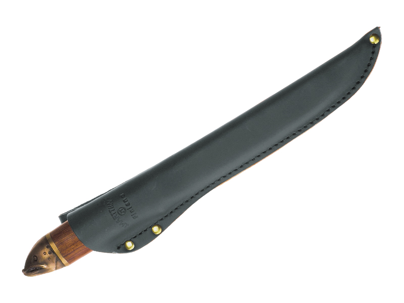 Poignard nordique à filets Marttiini lame 19 cm - manche bouleau chauffé mitre tête de poisson en bronze